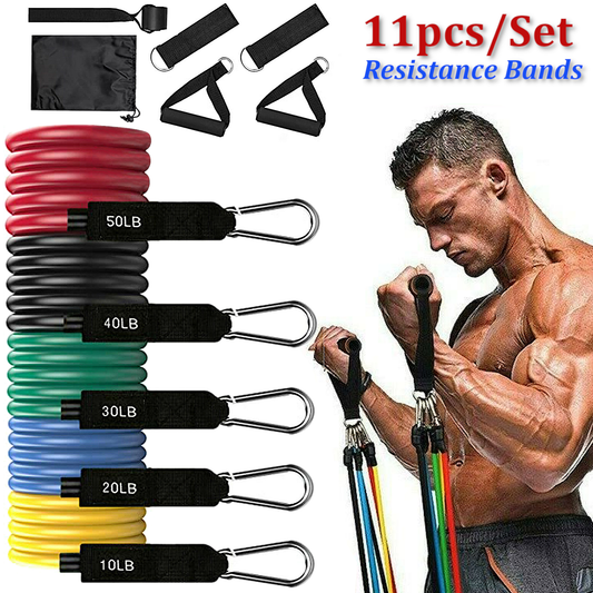 11 PCS Resistance Bands Set Home Gym Exercise Tube Bands Training - Total Resistance 150 Lbs