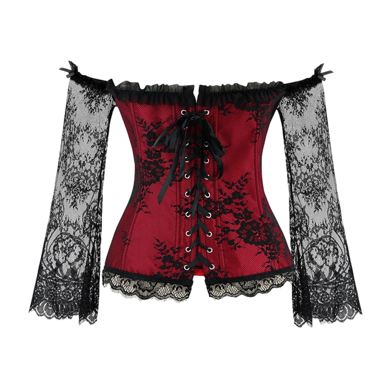 - A line of lace trim at the top and base of the corset softens the bust and waist lines adding a more feminine touch to the body